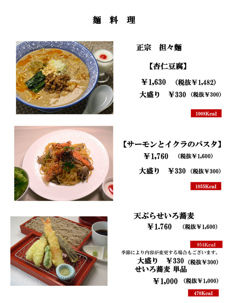 ※一部のメニューにアレルギーの原因となる食材を使用しております。アレルギーをお持ちの方は係にお尋ねください。